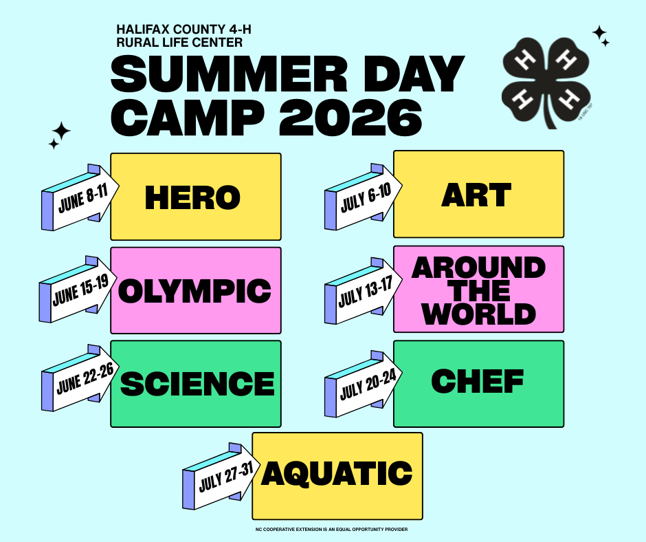 Halifax County 4-H Rural Life Center Summer Day Camp 2026 schedule with weekly themes and dates
