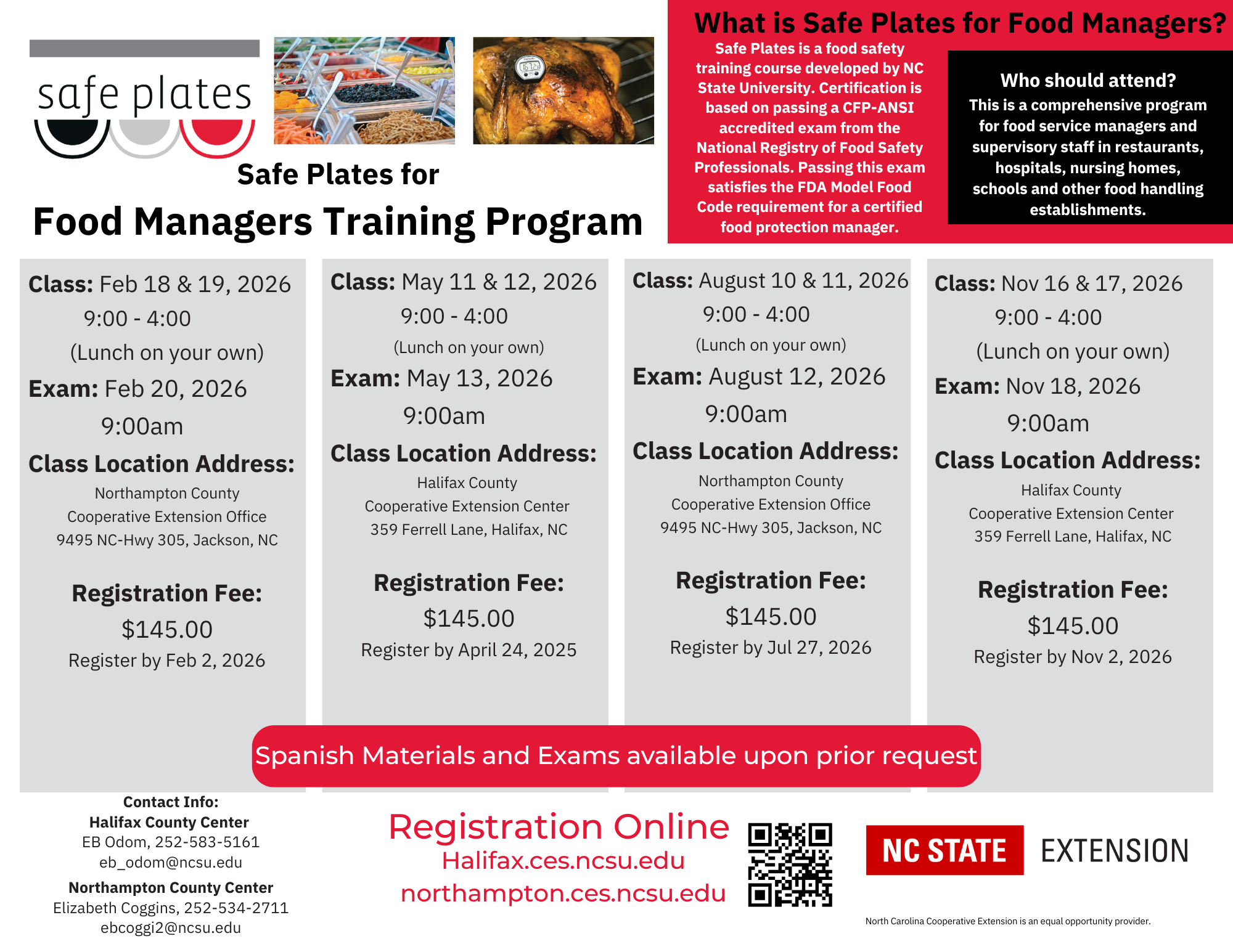 Where: all classes will be held at Halifax County Extension Kitchen, 359 Ferrell Lane, Halifax, NC